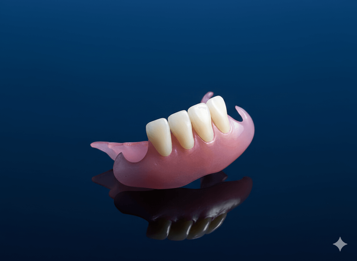 Стоимость «бабочки» на 4 зуба зависит от материалов, применяемых для ее изготовления. Цены на нейлоновые системы выше, более доступной считается протез с базисом из акрила.