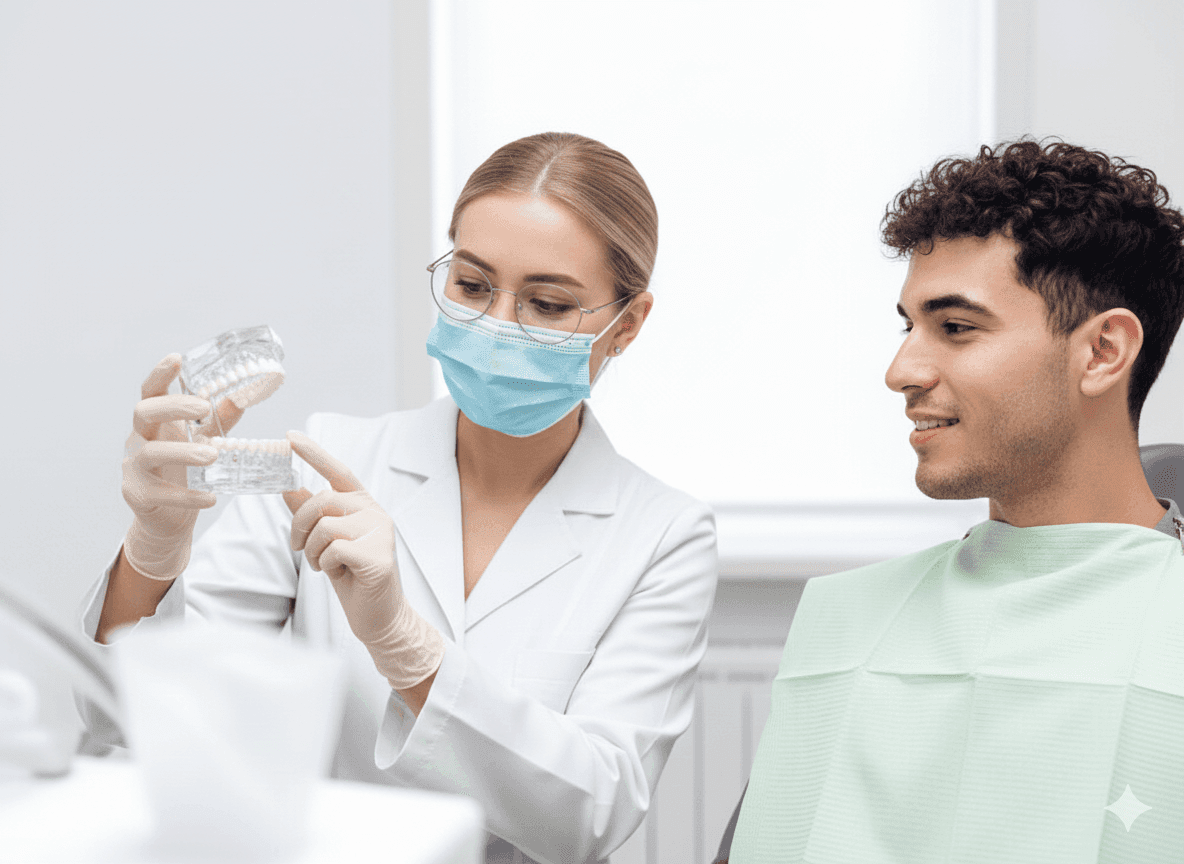 Для восстановления жевательной группы зубов может также применяться сочетание двух технологий. Для замещения утраченных единиц изготавливают съемные протезы. Но фиксируют их не на собственных зубах пациента, а на установленных в челюсть имплантах с коронками.